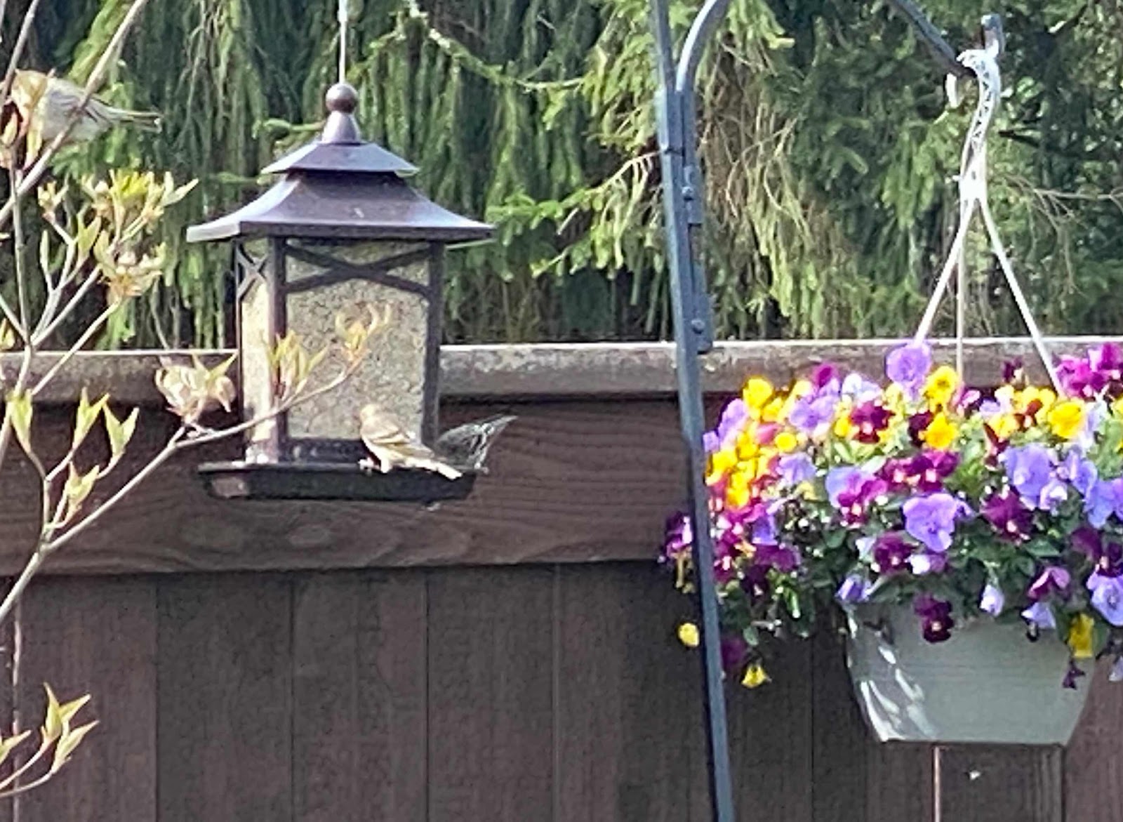 As I was watching the birds (pine siskin at the moment), I was thinking how nice it is that hubby (the birds call him “that man”) just refilled the feeder with sunflower chips. Seeing the feeder all full makes me feel like the birds are well-provided for.