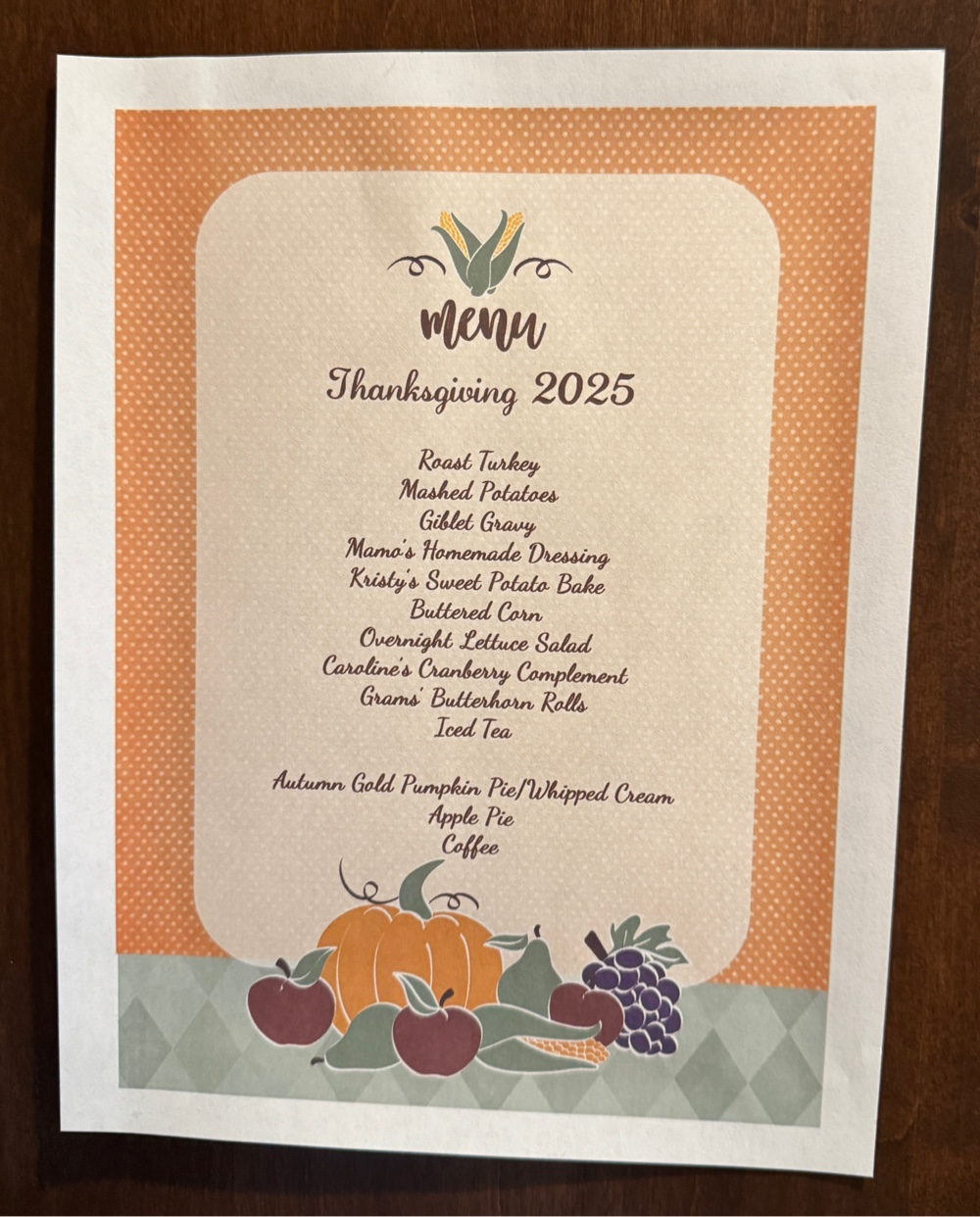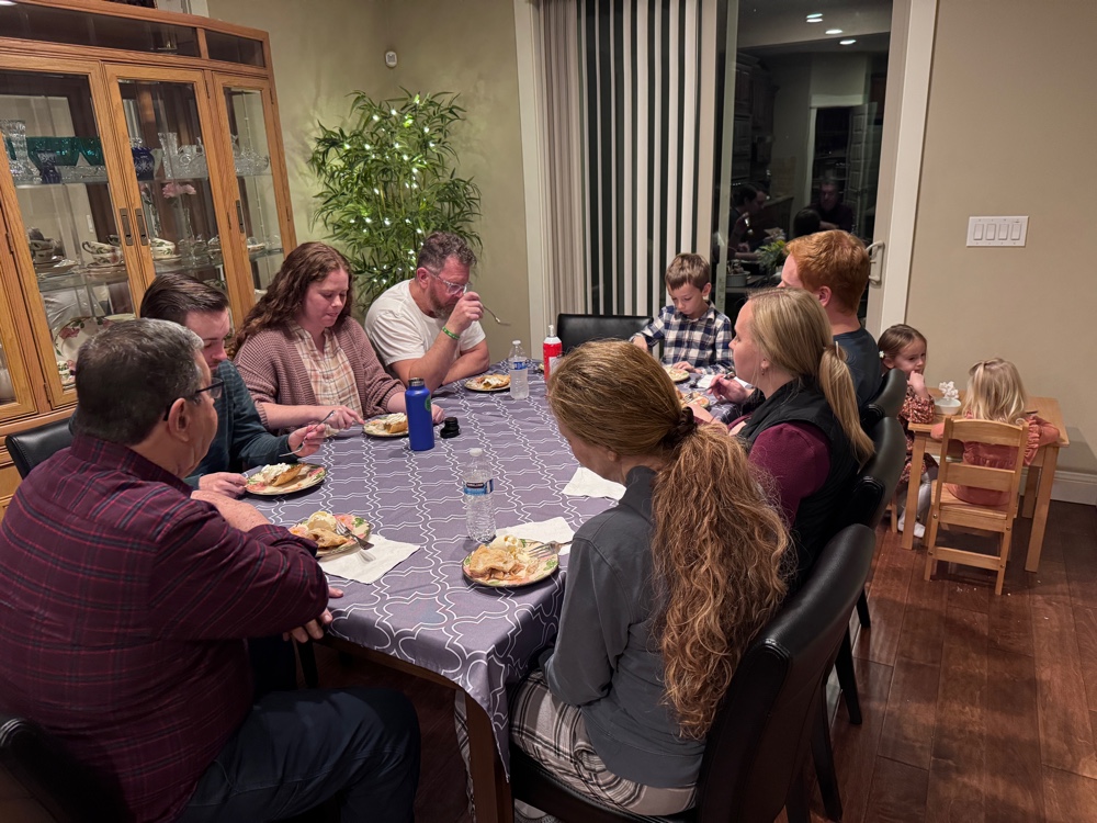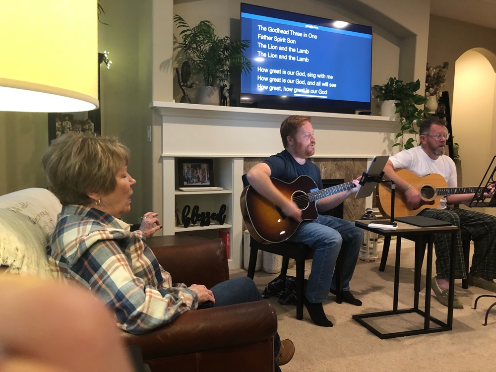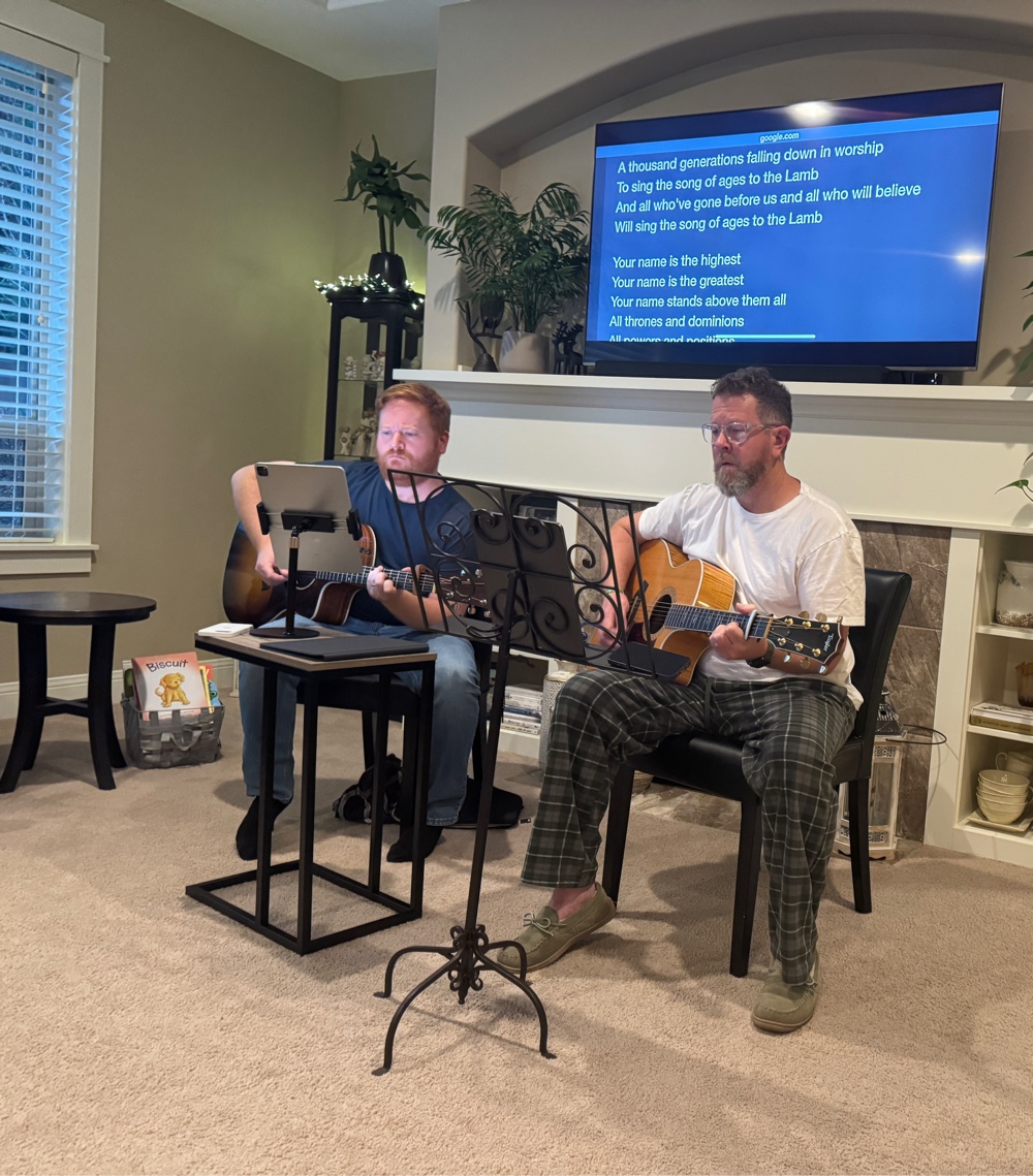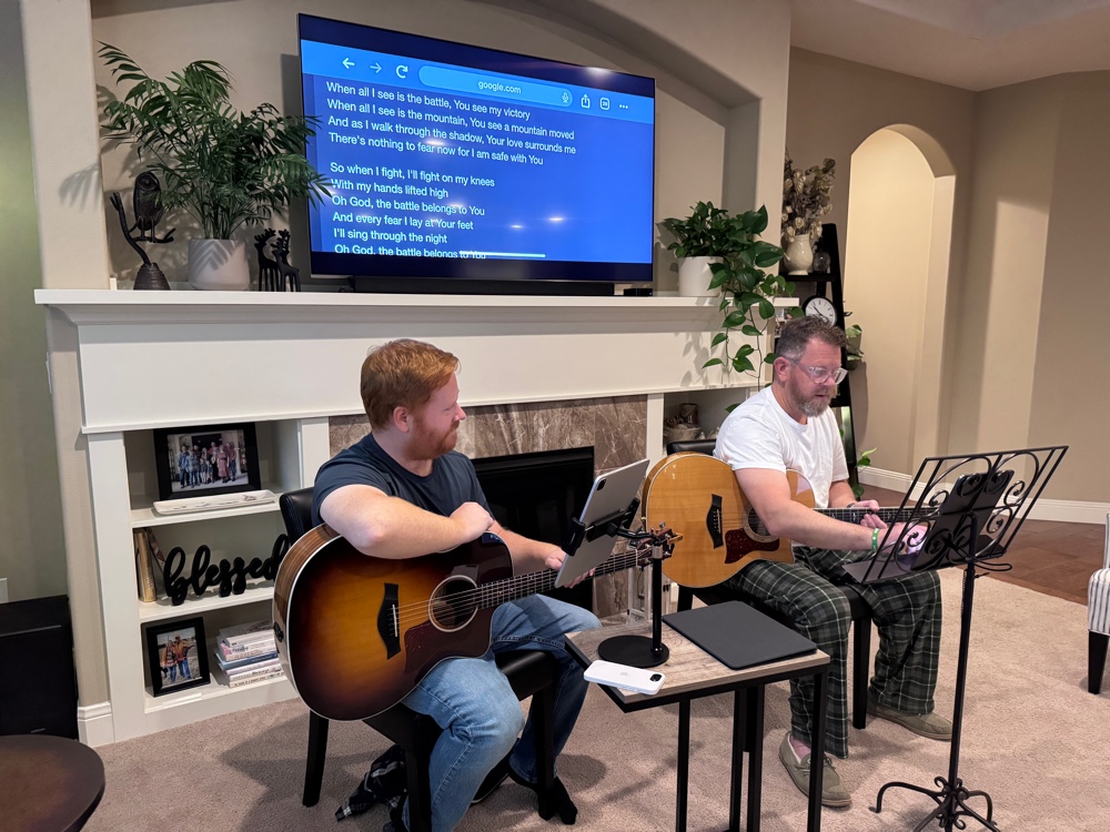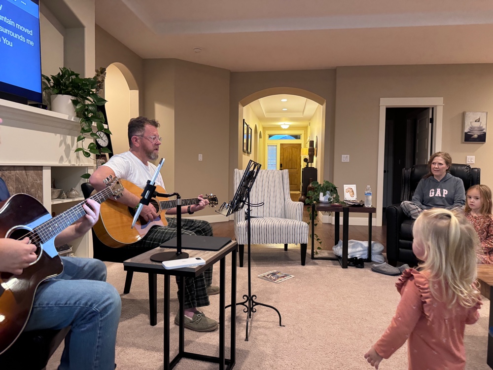 Following the “gratitude service,” the guys (son Mark and his son Conner) get out their guitars and iPads (for chord charts), while Tory gets her phone set to cast the lyrics on to our TV screen. We are so blessed to have so much music talent in our family (vocal and instrumental), and it is always a very special time of Praise and Worship.