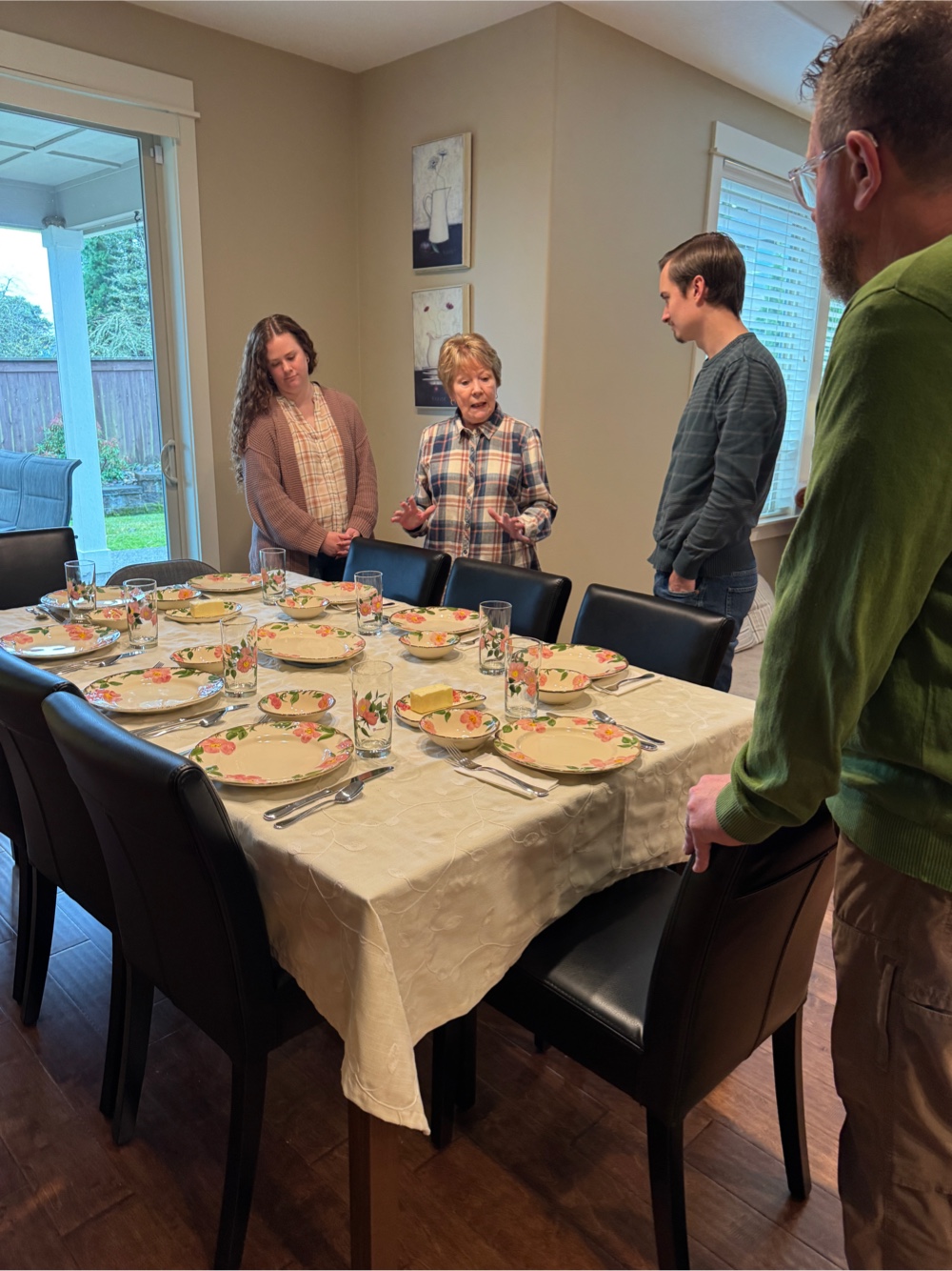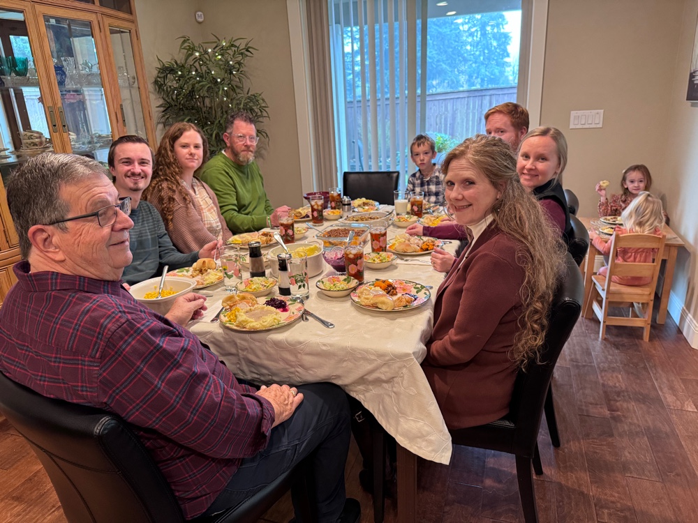 Since we have lived in the Pacific Northwest, it has become our pattern for us to have the Thanksgiving Dinner/Giving Thanks celebration at our home (where our family out here is all within an hour or so from us). Our son and his wife host the overnight Christmas Celebration.